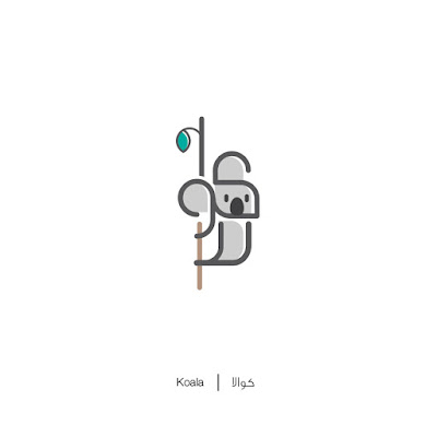 Mahmoud takes the Arabic word for an object and then creates an illustration of that object, using the original Arabic word at the core of each.